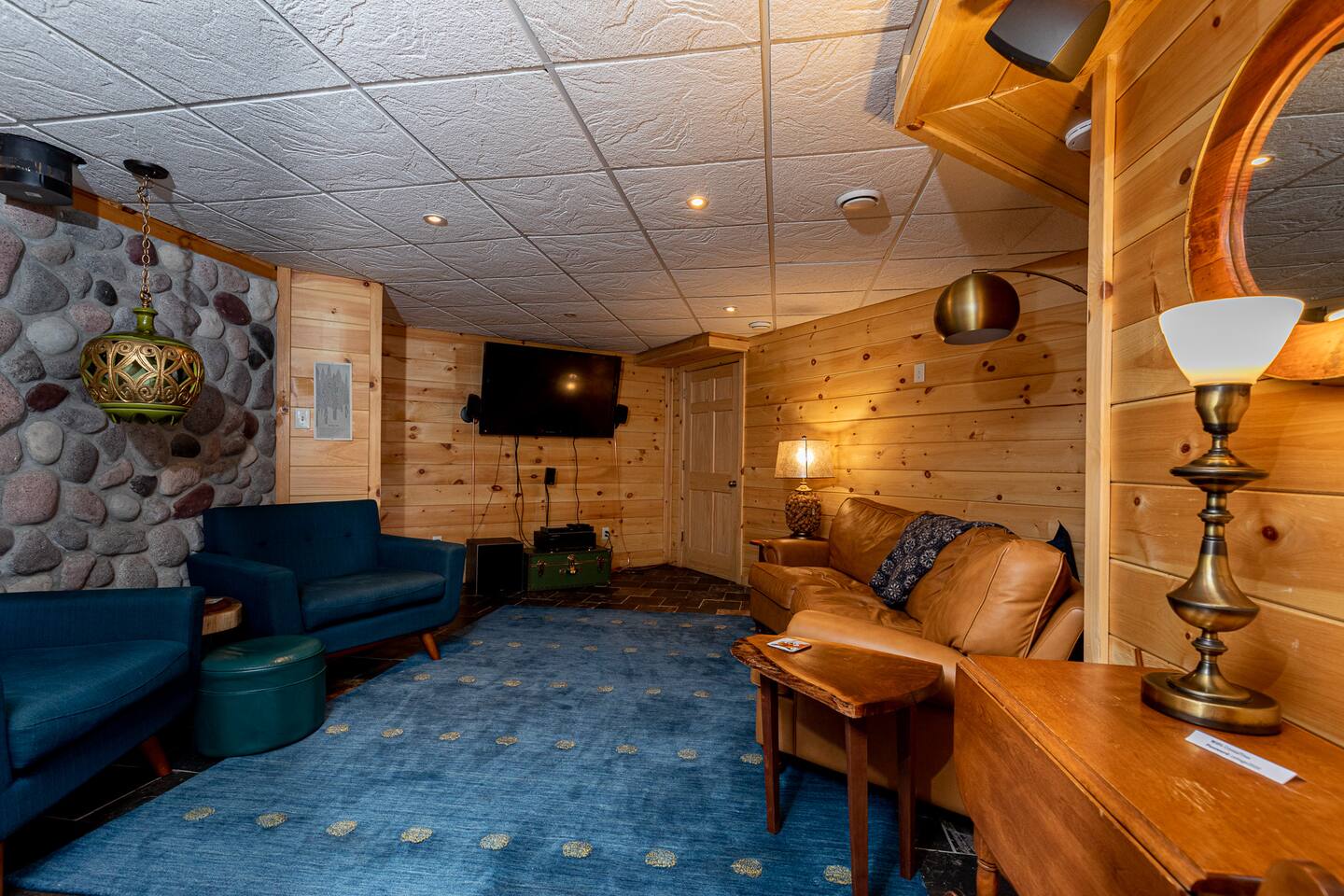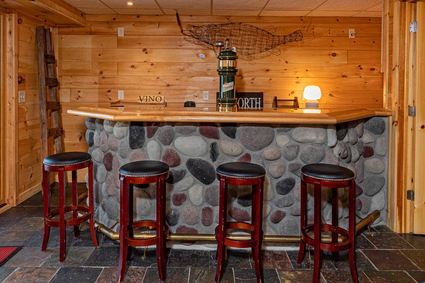 Large Fire Pit with Seating | Private Beach | Sonos Music System | 2,500 Sq Ft Whether you want to fish, waterski, or snowmobile, this luxurious lakefront home has something for everyone to enjoy. OUTDOOR LIVING: Deck with patio furniture, gas grill, kayak, paddleboat, boat dock with buoys, floating dock (swimming), nearby public loading/boat launch. KITCHEN: Fully equipped with stainless steel appliances, dishware and flatware, drip coffee maker and coffee grinder, toaster, crockpot, popcorn maker, breakfast bar INDOOR LIVING: Dining table, 2 gas fireplaces, jetted tub, flat-screen TV with Chromecast, bar with mini-fridge, bar seating, laptop-friendly workspace GENERAL: Free Wi-Fi, on-site washer/dryer, linens and towels, hair dryer, Iron & board, ceiling fans. PARKING: Driveway (5 vehicles) 30-Amp RV outlet